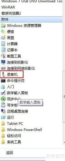 5、 开始菜单中依次选择所有程序、附件,打开录音机