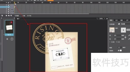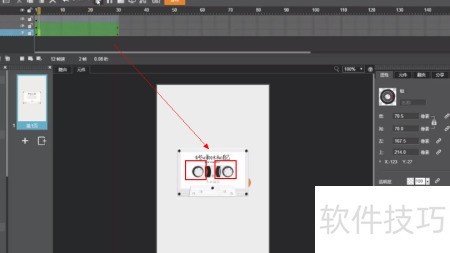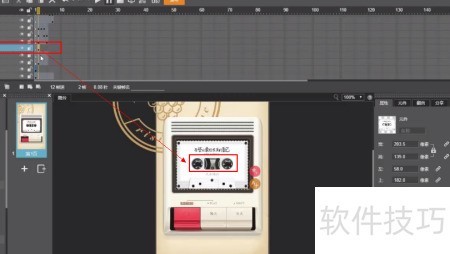 8、 进入第2帧时,需实现录音机初始静止,仅在点击录音或播放按钮后才开始旋转的效果。新建名为不动的图层,在第2帧插入关键帧并放置不旋转的录音机素材,注意清除该图层后续帧的内容。