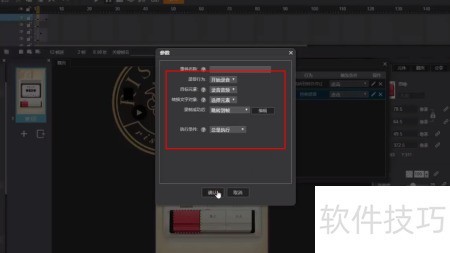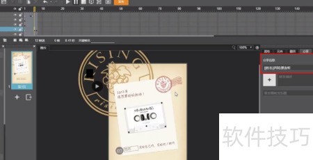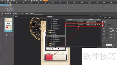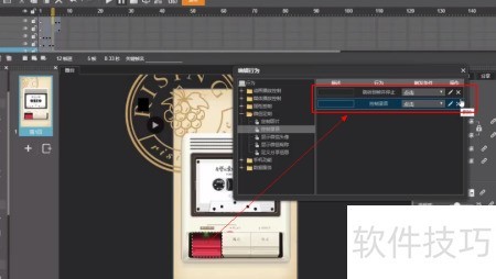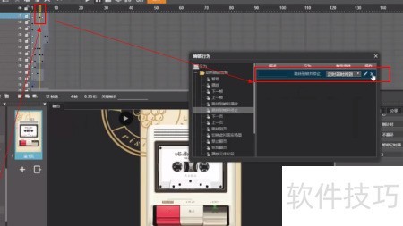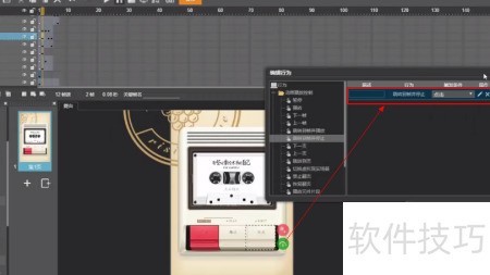 7、 为打开未来录音机按钮设置点击后跳转至第2帧并停止的交互功能。