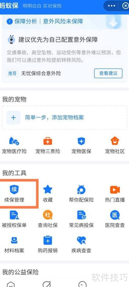 2、 进入我的页面,点击续保管理即可开启服务。