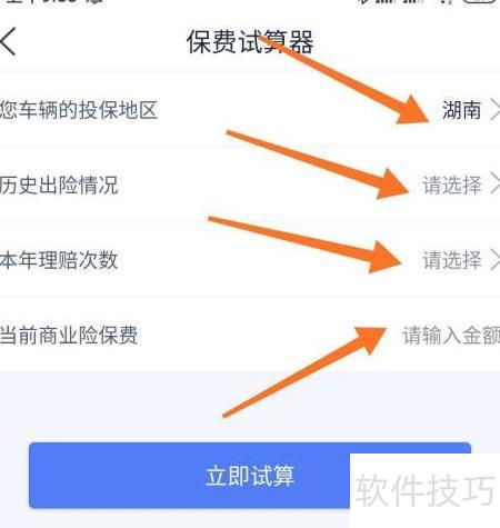 3、 填写车辆投保地区及当前商业保险费用等相关信息。