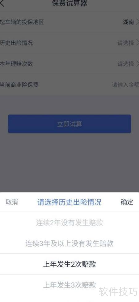 4、 历史出险记录包括:上年无理赔、连续两年无理赔、连续三年无理赔,以及上年发生2次、3次、4次或5次及以上理赔的情况。