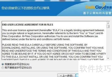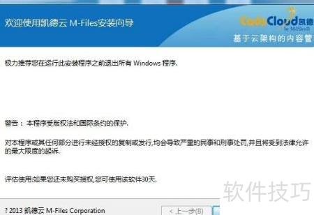 5、 下载凯德云M-Files致得文档管理系统安装包后,双击运行安装程序,界面所示,点击下一步继续安装。
