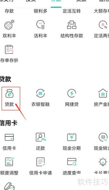 2、 进入新页面后选择贷款功能。