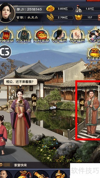 6、 向右滑动府邸场景可寻媒婆,查看未婚成年子女及已婚子女情况。