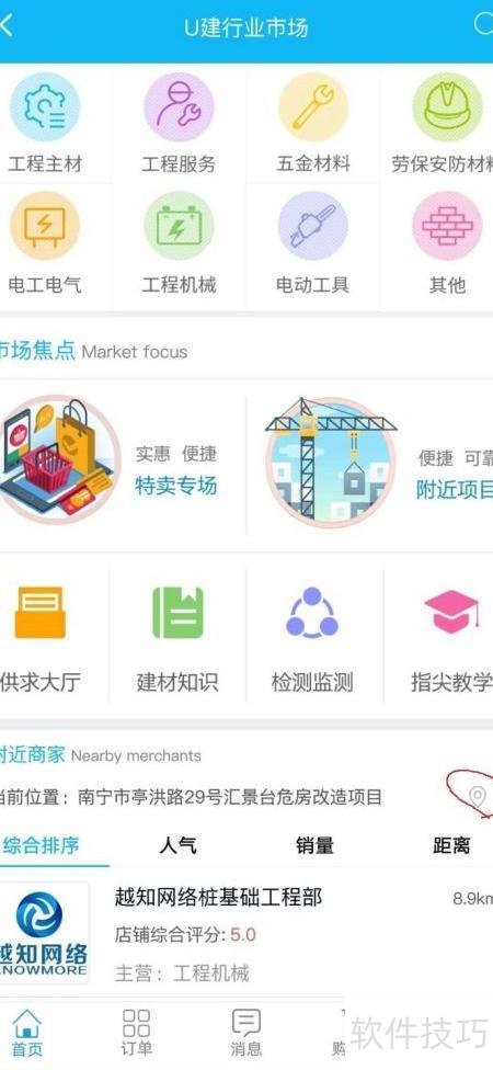3、 点击定位后,您周边的材料商将按距离远近全部呈现。