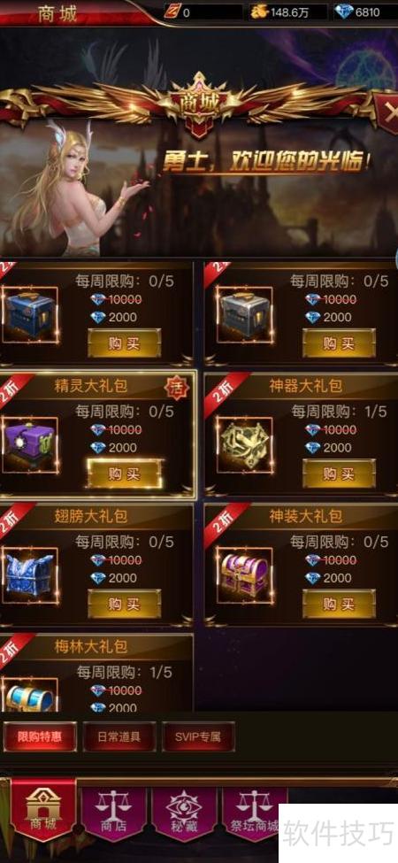 2、 商城精灵礼包每周限购五次,每次2000钻石,价格优惠,性价比较高。