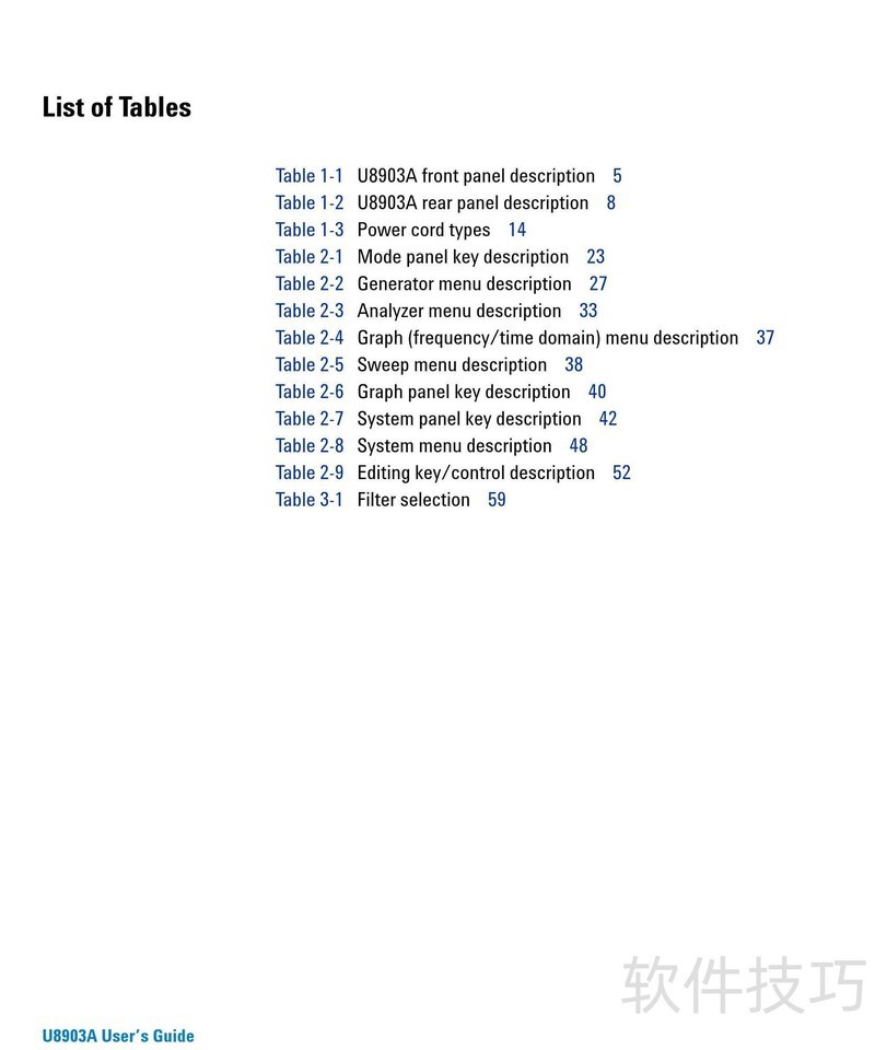 、 U8903A音频分析仪操作手册详细说明了仪器的操作步骤与常见问题的处理方法,帮助用户正确高效地使用设备。