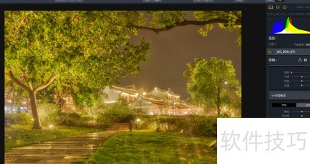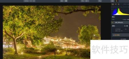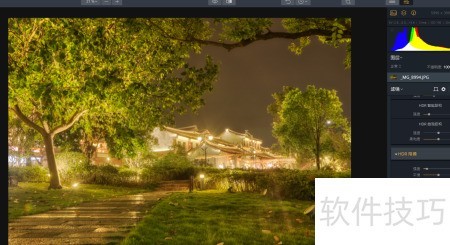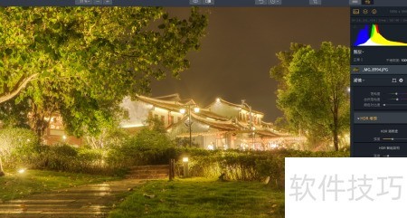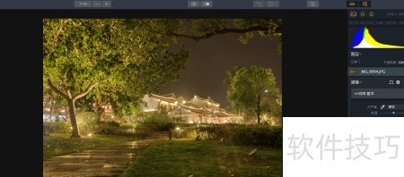 8、 软件将三张不同曝光的照片合成后,可得到一张曝光均衡的图像;随后选用HDR基础调整工具,按需求微调相关参数即可。