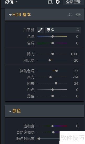 4、 选用HDR基础调节工具,按需微调各项参数。
