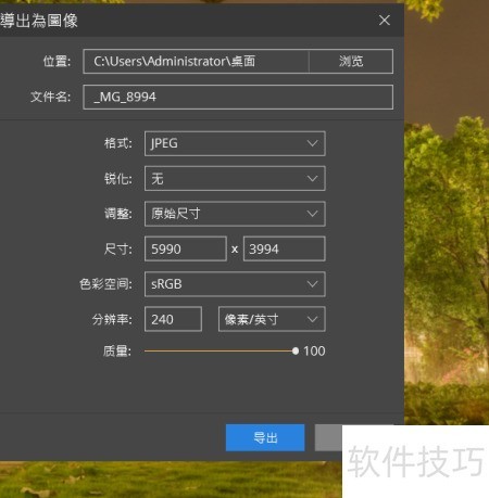 6、 开启降噪功能处理图像,完成后导出并保存文件。