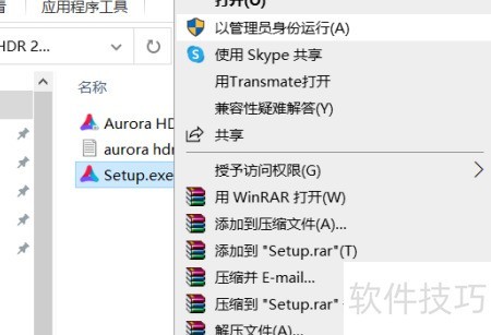 1、 下载Aurora HDR 2020安装包并解压,然后右键点击其中的setup.exe文件,选择以管理员身份运行即可开始安装。