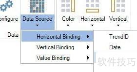 9、 展开数据源列表,将时间列设为横向绑定,日期列设为纵向绑定,数值列作为值绑定,具体参见图2所示。