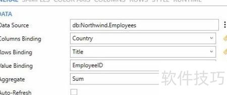 16、 在General选项卡中,除功能区设置外,还可设定用于生成示例数据的聚合方式。若服务器支持运行时更新,可开启自动刷新以实时处理变化。用户可选择留空水平或垂直绑定,此时数据图表将仅显示单行或单列示例数据。