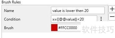 25、 运行时,数值低于20的样本将显示为红色(8所示)。添加示例规则时,点击规则列表右侧的小矩形,从弹出菜单中选择相应选项即可。