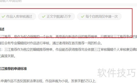 1、 三江推荐是阅文集团作家助手平台面向小说作者推出的申请项目,符合条件者可提交申请,最终是否通过需视审核结果而定。
