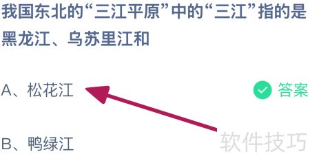 1、 三江平原中的三江指黑龙江、乌苏里江与松花江。