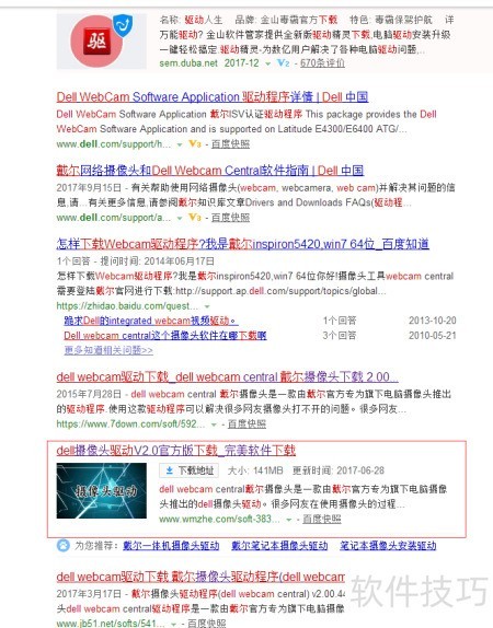 1、 搜索dell webcam 驱动下载,找到相关网站并点击进入即可获取驱动程序。