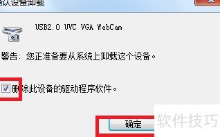 14、 随后将出现确认设备卸载窗口,勾选删除驱动程序,然后点击确定完成操作。