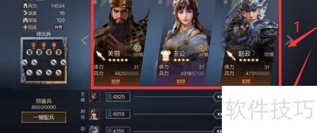 1、 点击选择武将