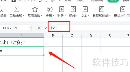 1、 启动Excel,新建工作表,选中A2单元格,在公式栏中输入等号即可。