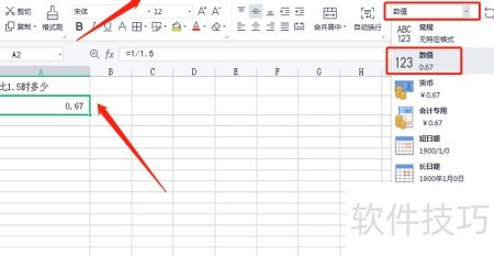 2、 在输入框中键入=1/1.5即可完成计算。