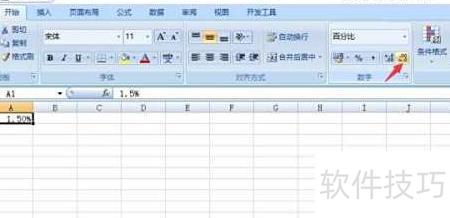 1、 在Excel单元格输入1.5%即可显示百分比。