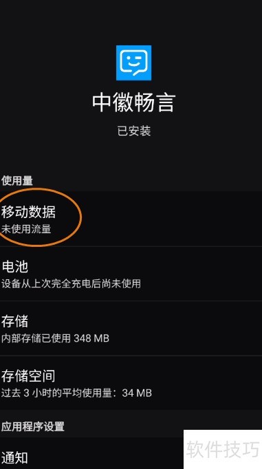 打开中徽畅言应用,进入移动数据设置,开启允许后台流量使用的开关即可。