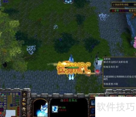 4、 随后前往右侧区域,找到图示NPC传送并接取击杀龙虾任务,待角色达到100级后继续后续内容。