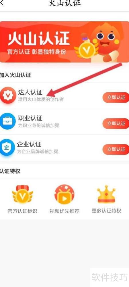 3、 第三步,点击顶部的火山认证按钮。