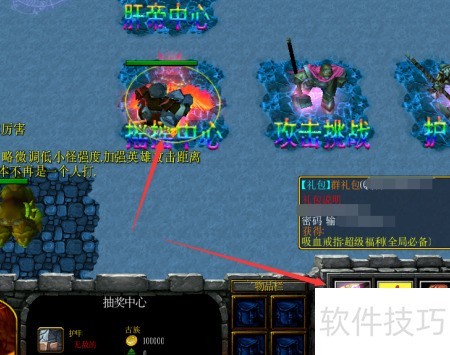 3、 选择英雄后立即出现在基地,打开输入框,输入隐藏密码支持作者即可获得隐藏装备,具体操作所示。