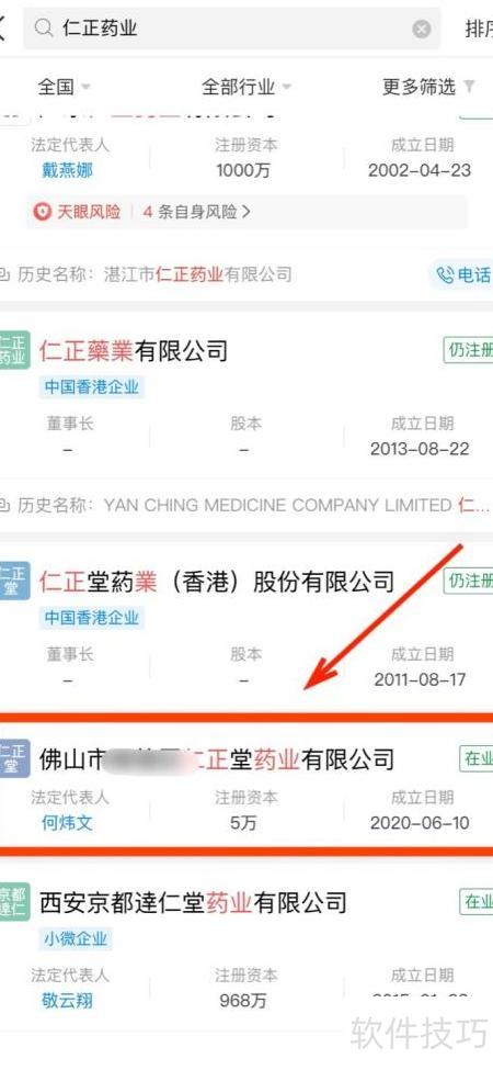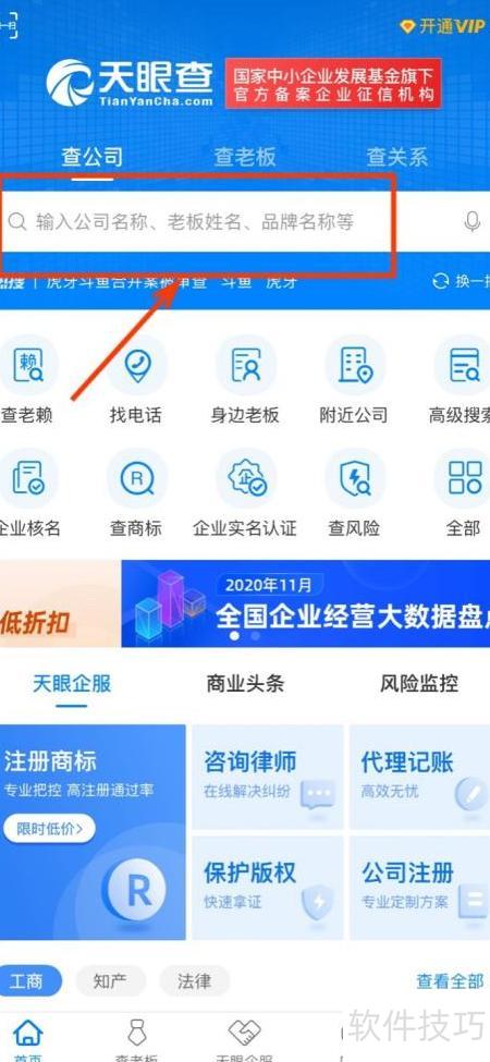 2、 进入天查,搜索相关内容