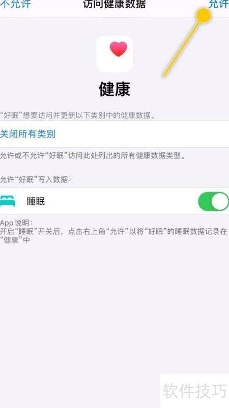 4、 进入访问健康数据页面后,点击右上角的允许即可。