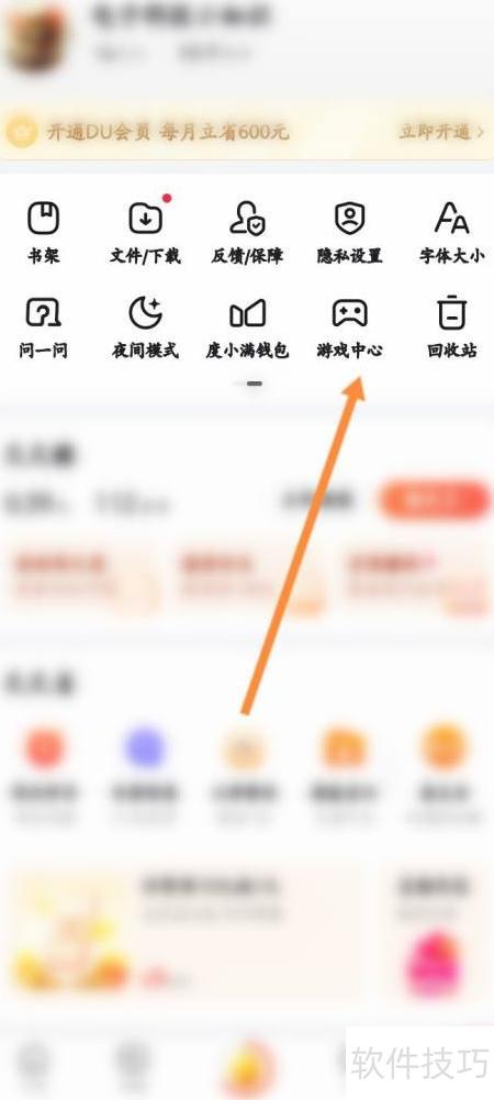 2、 点击顶部的游戏中心入口。