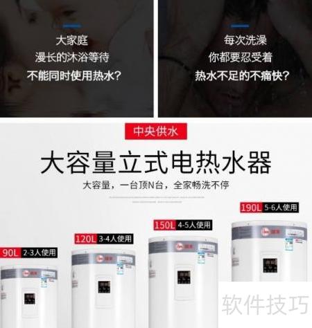 6、 别墅、联排、独栋或跃层住户可选用燃气或电热落地式热水器,容量大、出水量足,轻松满足全家日常热水需求。具体选型建议详询官方店铺客服获取专业指导。