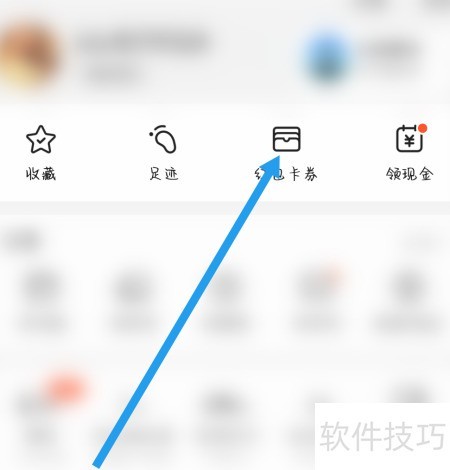 2、 进入我的页面,选择红包或卡券。