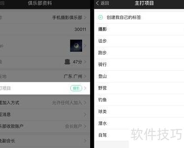 11、 俱乐部资料可自行完善,如设定主打项目,最多选三个;若预设选项不符,支持自定义添加项目。