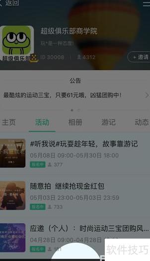 13、 打开APP进入俱乐部首页,选择活动并进入详情页面,下滑至底部点击按钮,即可成功加入该俱乐部。