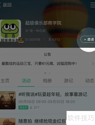 14、 在俱乐部活动详情页点击邀请,即可将活动分享至各平台,邀请好友加入。