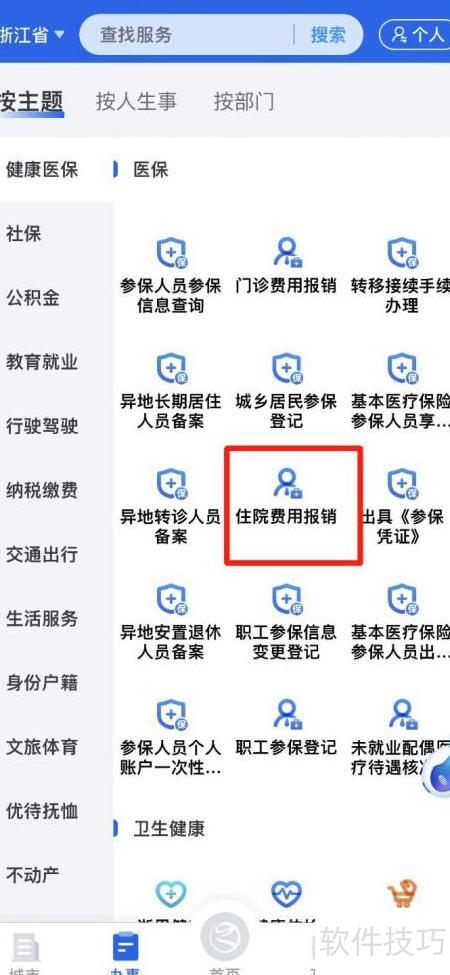 2、 进入全部服务页面后,选择并点击住院费用报销选项。