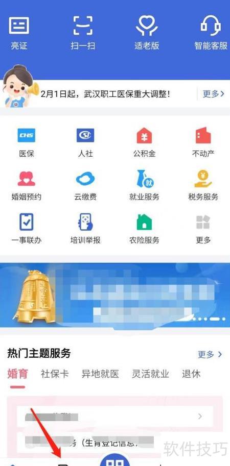 1、 打开鄂汇办应用,选择底部办事选项。