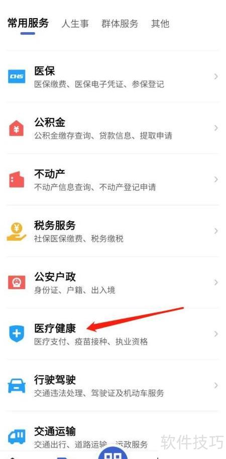 2、 点击常用服务中的医疗健康即可进入。
