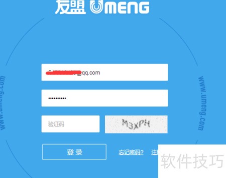 4、 登录友盟账户,操作所示。