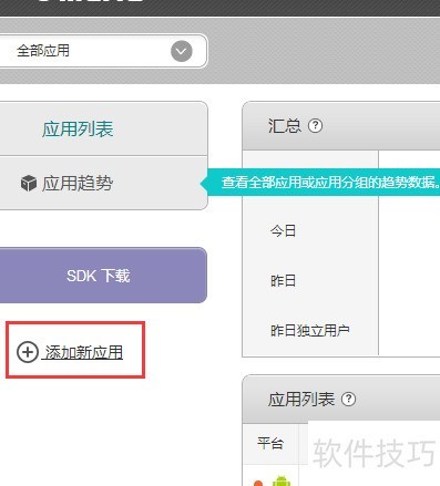 5、 进入账户的应用列表,点击添加新应用即可。
