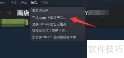 5、 进入Steam后,点击左上角游戏选项,选择激活产品完成付款即可。