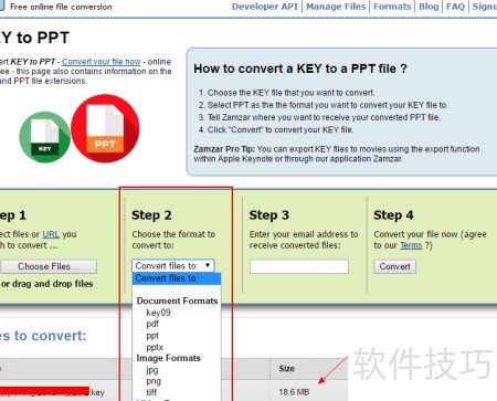 3、 选择所需文件格式,将key文件转换为目标格式。