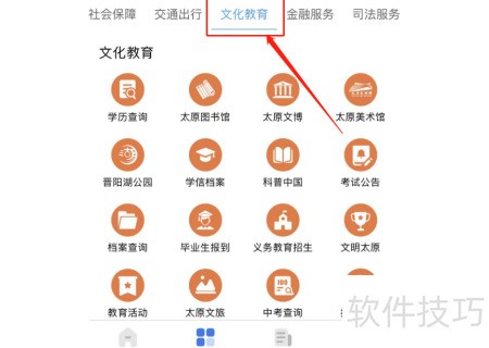 3、 进入文化教育栏,点击查询中考信息