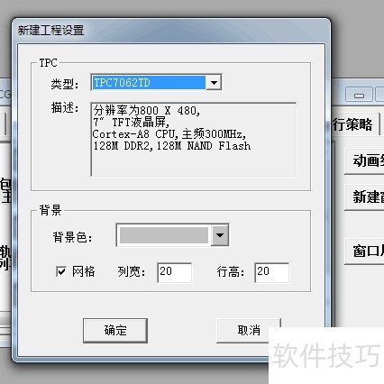 2、 新建工程,点击左上角文件菜单,选择创建新工程,选定触摸屏型号后确认,即可进入编辑界面开始操作。