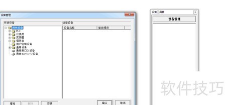 6、 设备界面尚未添加组件,点击电机窗口的设备管理将弹出新窗口进行组件添加。