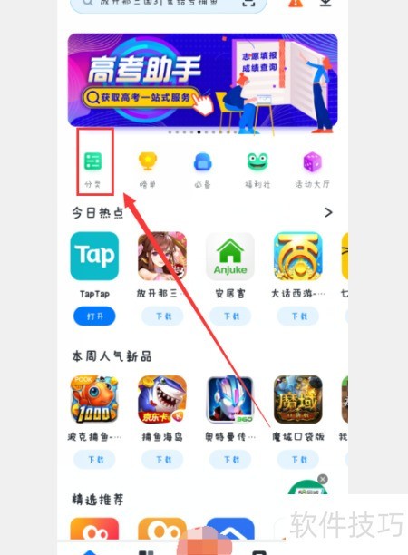 5、 点击顶部分类进入即可